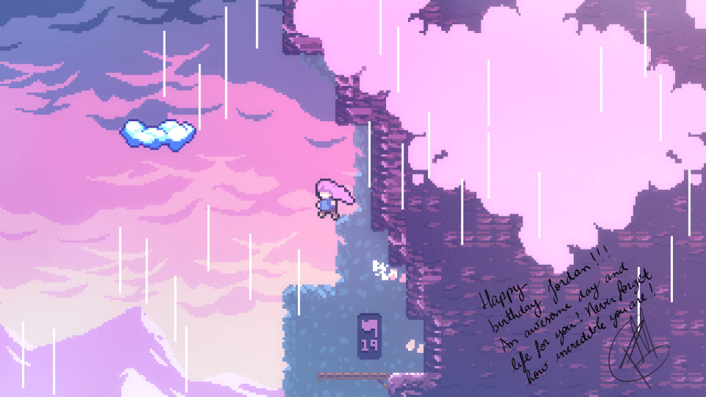 Celeste: What a special game. It continues to stick with me almost two years later. The game play, the message, the absurdly-rad soundtracks I can barely listen to without being overwhelmed…and a whole new free DLC I can’t bring myself to finish (and whose soundtrack even kept me company through this). If that wasn’t good enough, I received a badass Celeste T-shirt for my birthday from Erik and a personal message from the game’s creator at the request of Rob. It feels like a game that means so much to me at this point that I’m just destined to revisit it again and again. I’m so thankful to be able to have new experiences like this into my 30s.